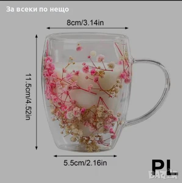 Двустенна чаша за кафе, топли напитки, естествени цветя, 330 мл Morello.
