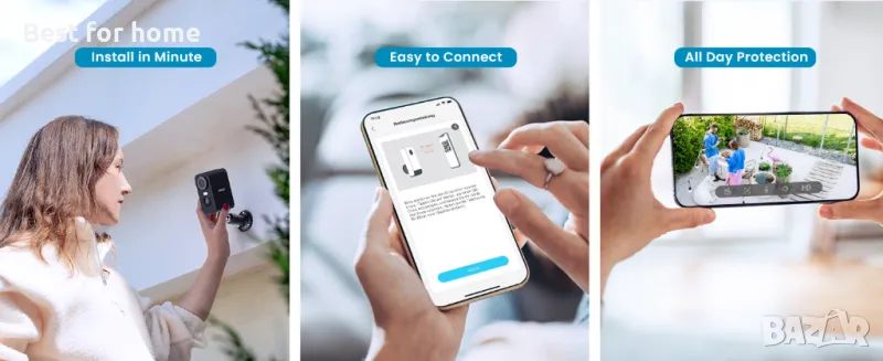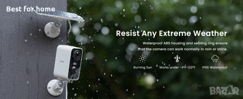 100% без функции & IP65 водоустойчивост - Всички функции на ПРИЛОЖЕНИЕТО "ieGeek Cam" са безплатни, без абонаментни такси, много персонализирани функции, поддръжка на Alexa; Външната камера ieGeek е с напълно обновен гумен пръстен за подобряване на херметичността, водоустойчивост, ефективно увеличена с 50%, лесно издържа на дъжд и сняг.