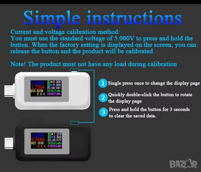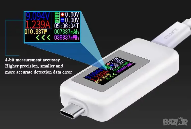 Съвременен USB тестер с цветен дисплей и Type-C конектор за прецизен мониторинг на USB устройства! С широк обхват на измерване и детайлна информация, този тестер е идеален за диагностика на заряди, кабели и USB устройства.
