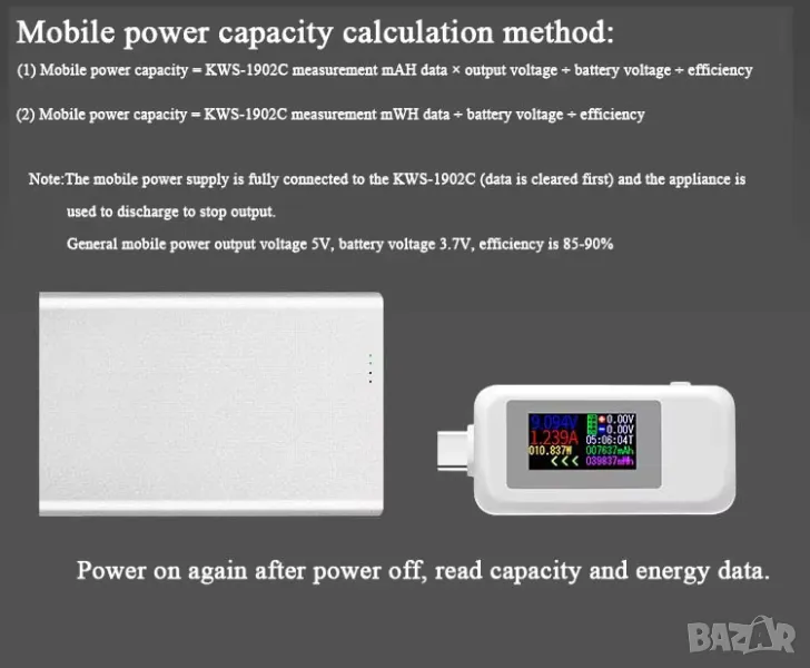 Детайлна информация: Показва мощност, енергия, капацитет и време