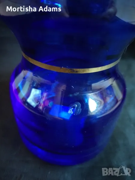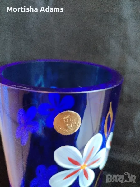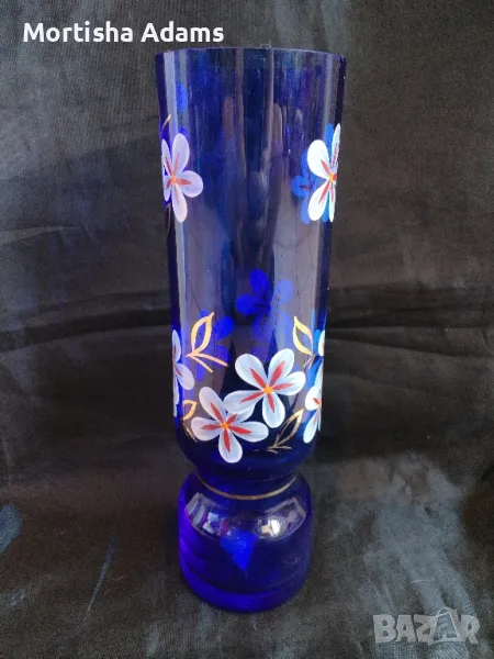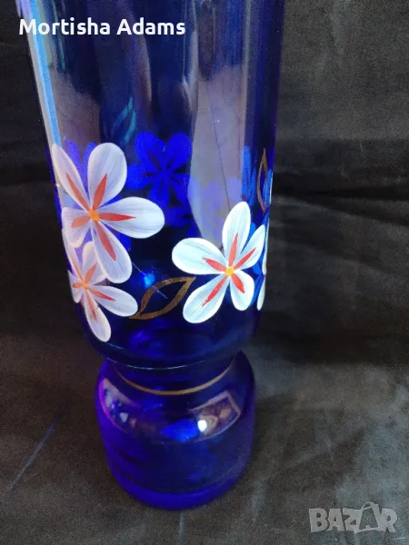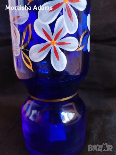 💙💙💙 Български разкош, SIP, калиево стъкло с ръчно нанесена декорация. Височина- 27см., външен диаметър на отвора- 7,5см., дебелина на стъклото- 6мм. Драскотини! Моля, разгледайте снимките!