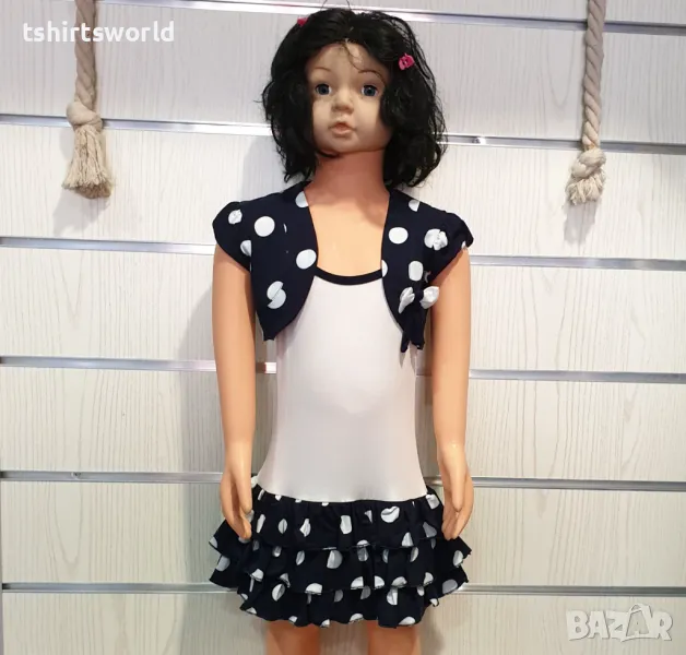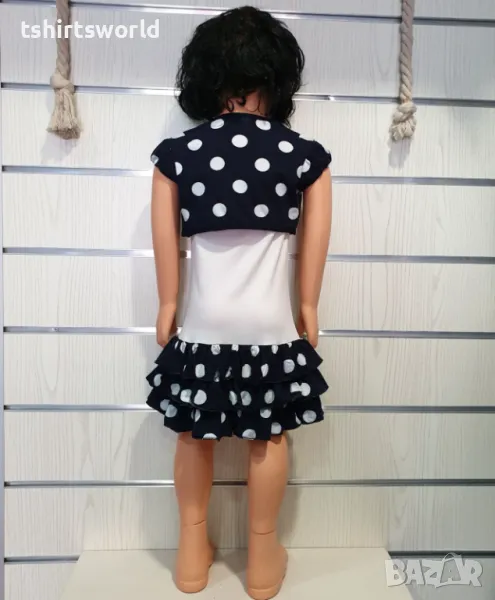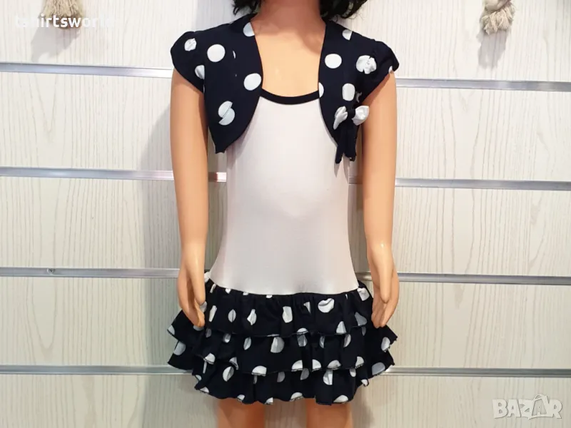 Нова детска моряшка рокля-болеро с ръкави на точки