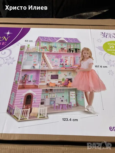 Дървена къща за кукли 158см висока 123см широка с 29 аксесоара