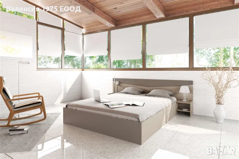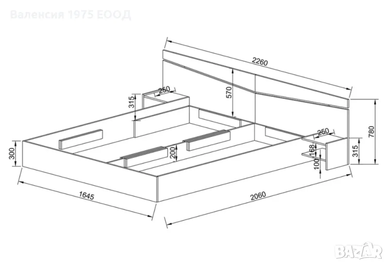 ЛЛегло за матрак 160/200 см с две отворени нощни шкафчета, повдигащ амортисьор, делител в подматрачното пространство, който от една страна го разделя на две по-удобни части за съхранение, а от друга, заздравява значително цялостната конструкция на леглото.