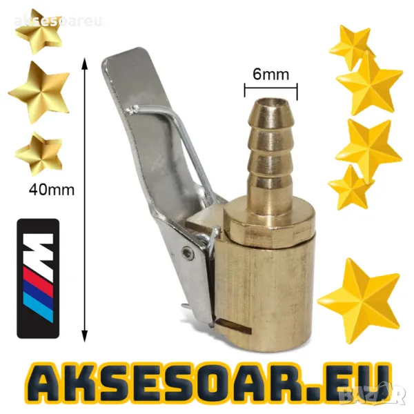 Конектор букса 6 мм адаптер за помпа щуцер с щипка за вентил на автомобилни гуми Скоба за дюза на помпата Бързо свързване за помпене Въздушен патронник