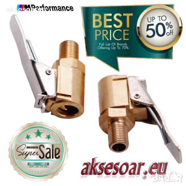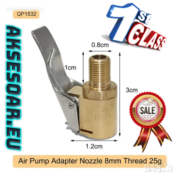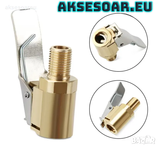 свързване букса 8 мм адаптер с резба за помпа на кола щуцер с щипка за вентил на автомобилни гуми Скоба за дюза на помпата за помпене Въздушен патронник за надуване от Плътен месинг бронз
