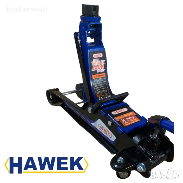 Крик крокодил нископрофилен с въртяща дръжка на 360° на марката HAWEK с товароподемност 3т , усилена конструкция , крикът е с максимална височина 380мм.