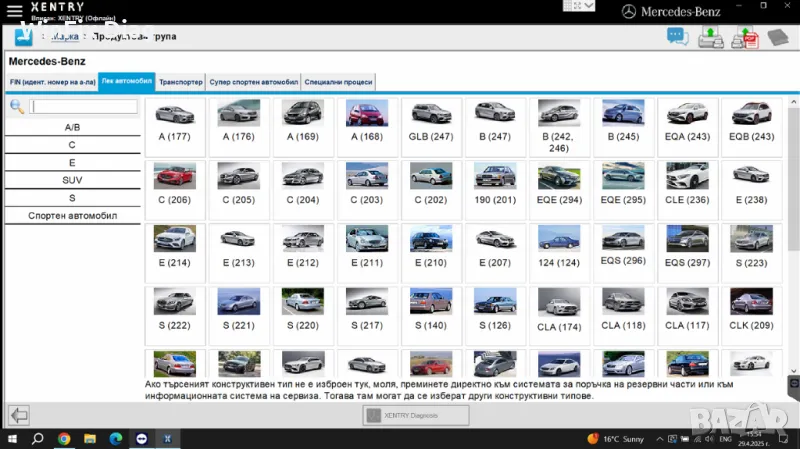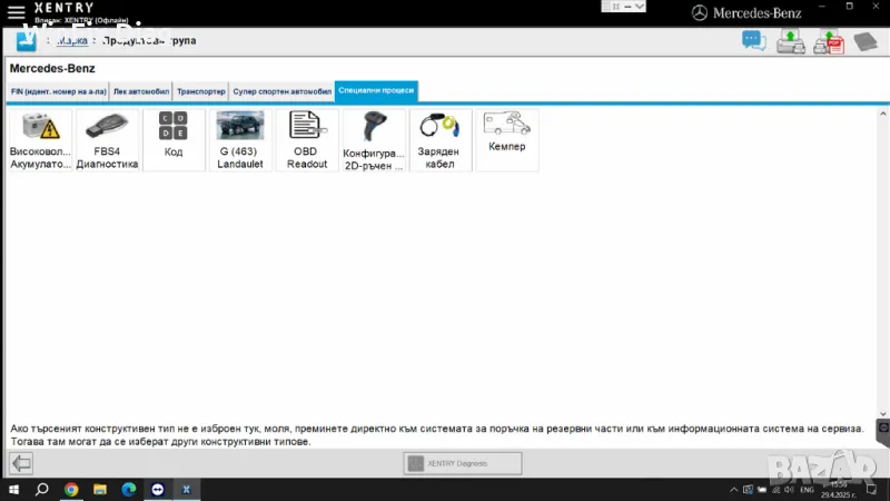 програма Mercedes-Benz DAS Xentry е предназначена за диагностика на