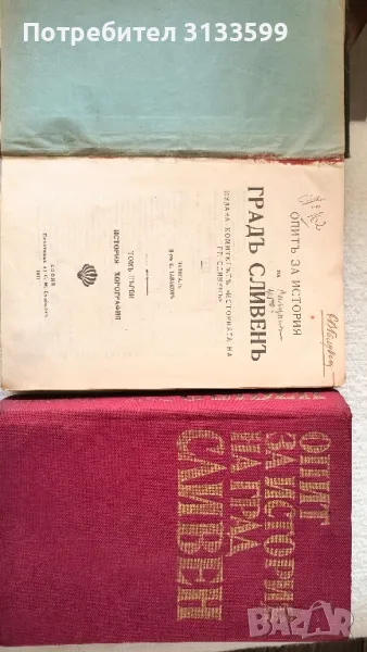- "Опит за история на град СЛИВЕН", Д-р Симеон Табаков, том I, Издателство на ОФ, София, 1986 г. Корици: твърди. Страници: 663. Състояние: много добро. Липсва книжната обложка. ЦЕНА: 10 лв.