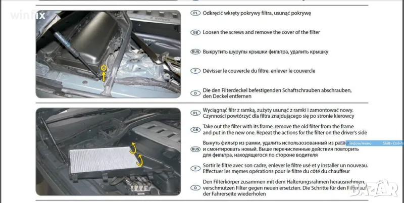,въздушен филтър ,маслен филтър .Има детайлни инструкции за смяна на