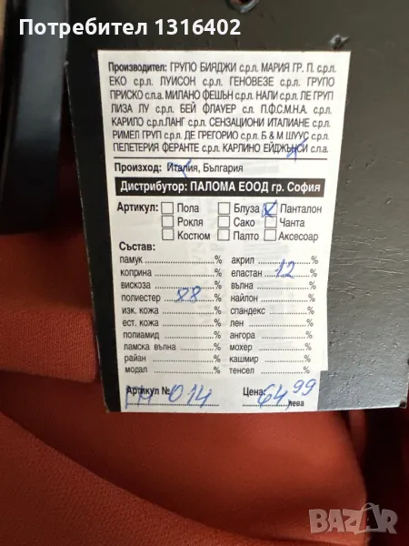Нов панталон с етикет JF Lefon, размер XS, снимка 1 - Панталони - 47363926 Нов панталон с етикет JF Lefon, размер XS, снимка 2 - Панталони - 47363926 Нов панталон с етикет JF Lefon, размер XS, снимка 3 - Панталони - 47363926 Нов панталон с етикет JF Lefon, размер XS, снимка 4 - Панталони - 47363926 Нов панталон с етикет JF Lefon, размер XS, снимка 5 - Панталони - 47363926 Нов панталон с етикет JF Lefon, размер XS, снимка 6 - Панталони - 47363926 1/6