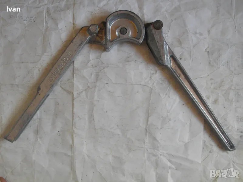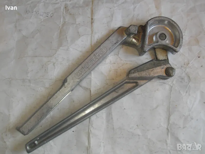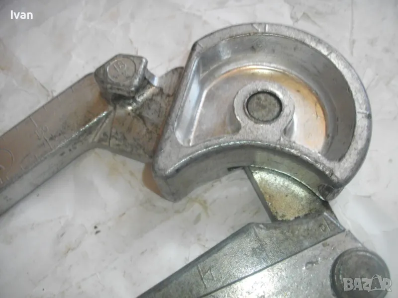 ОПИСАНИЕ на тръбогиб размер огъване тръба ф 18 мм - цена 259 лв. Оригинален ROTHENBERGER. Уред за огъване на меки и полутвърди тръби размер до ф 18 мм. Нов или като нов, трудно различим от нов. Отлично работно състояние. Изцяло алуминиев, еднокомпонентен. Разграфена глава, алуминиев вграден водач. Дръжката е разграфена от 15 до 30 см от двете страни. Цялостна дължина на инструмента - 475мм, ширина 200 мм. Радиус на огъване 55мм. Тегло на инструментът - 2,5 кг.
