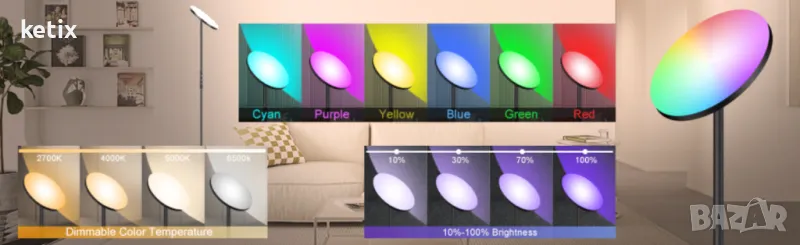 Специални характеристики :Енергоефективна, димируема, led rgb подова лампа, промяна на цвета, промяна на цвета, регулируема цветова температура, регулируема цветова температура, енергийна ефективност