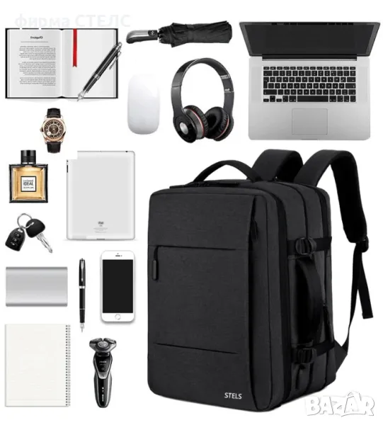 Раница за пътуване STELS с множество отделения и USB порт за зареждане на устройства. Подходяща за различни спортни активности като фитнес, колоездене, лов, риболов, бягане, плуване, бейзбол, футбол, бадминтон, тенис на маса, кънки и тенис.