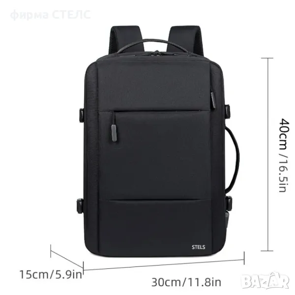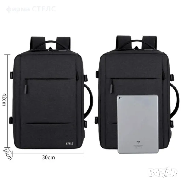 Раница за пътуване STELS, Ръчен багаж, Отделение за лаптоп, Водоустойчива, USB интерфейс, Материал Oxford, Унисекс, 30x15x40см