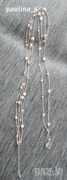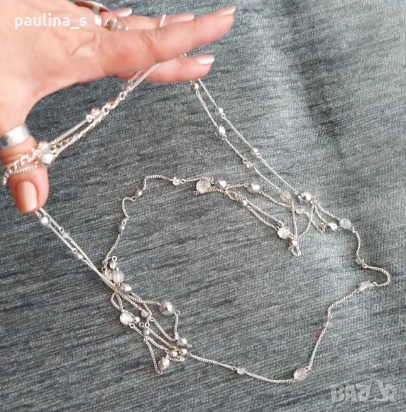 Двуредно колие тип гердан в сребристо с камъни и удължител.