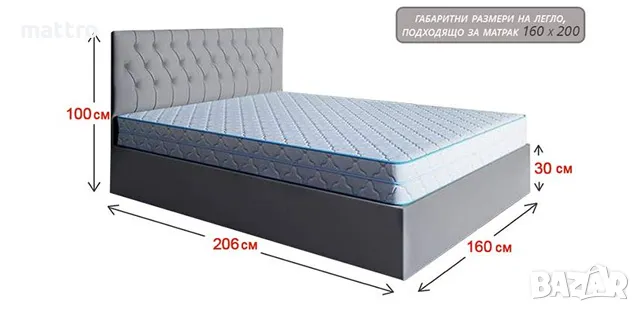 - Леглото е подходящо за двулицев матрак