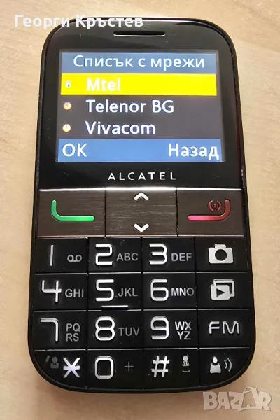 Alcatel 2001x - телефона се включва и работи, тестван с А1, нямам друга за проба, зарежда си батерията, която е за смяна, изобщо не се включва с нея, има БГ меню, отпред е с много добър външен вид, отзад капака е в лошо състояние, трябва да се почисти, SOS бутон, клавиатура, подсветка, камера са ОК, слушалката и микрофона не знам дали са ОК, не мога да ги пробвам, защото телефона НЕ намира мрежа, не може да се регистрира, без зарядно.