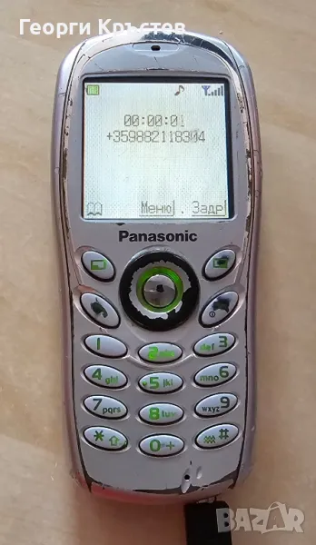 Panasonic G60 - телефона се включва и работи, тестван с А1, зарежда си батерията, но има софтуерен проблем, като е на зарядно работи, като махна зарядното телефона се изключва, или е от батерията, или от телефона, но по - скоро от телефона, има БГ меню, клавиатура, подсветка, слушалка, микрофон, всичко е ОК, лош външен вид, без приставка СИМ, батерия, заден капак и зарядно.