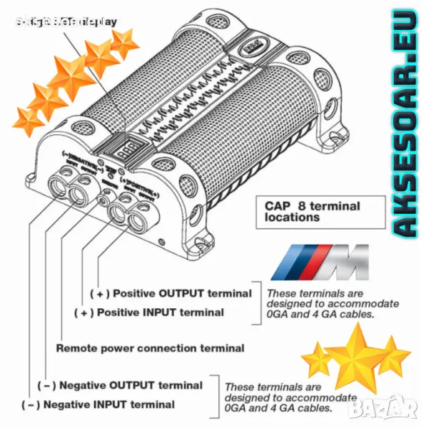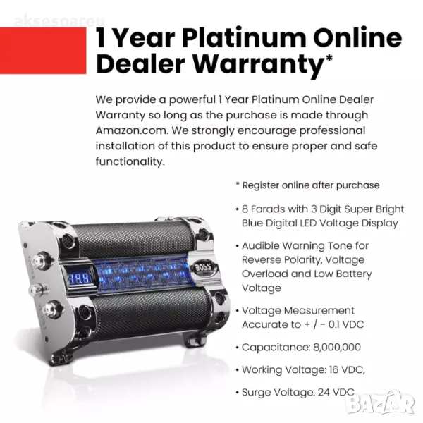 на надежден и мощен кондензатор. Използвайте предлагания от нас 8 фарада BOSS Audio Systems CAP8 8 кондензатор за озвучителната система на вашата колата. Този професионален кондензатор е създаден, за да се справи дори с
