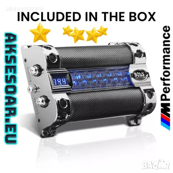 Пакетът съдържа: 1 бр. автомобилен кондензатор за музика и