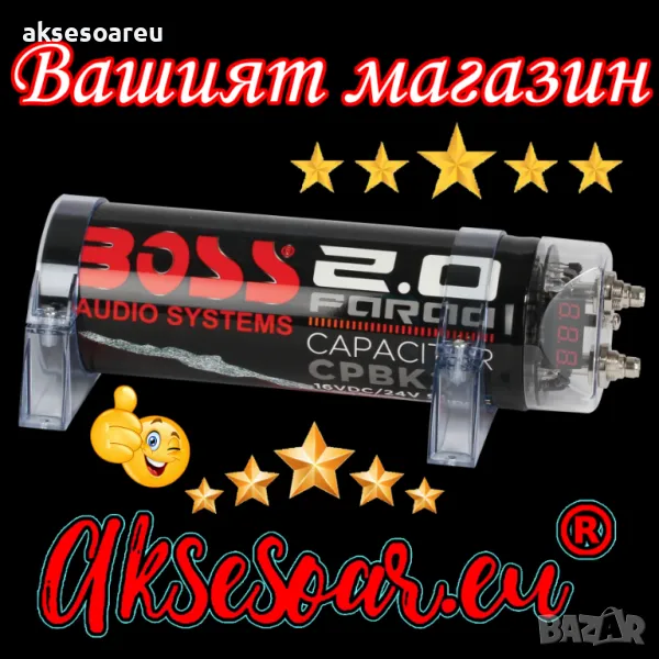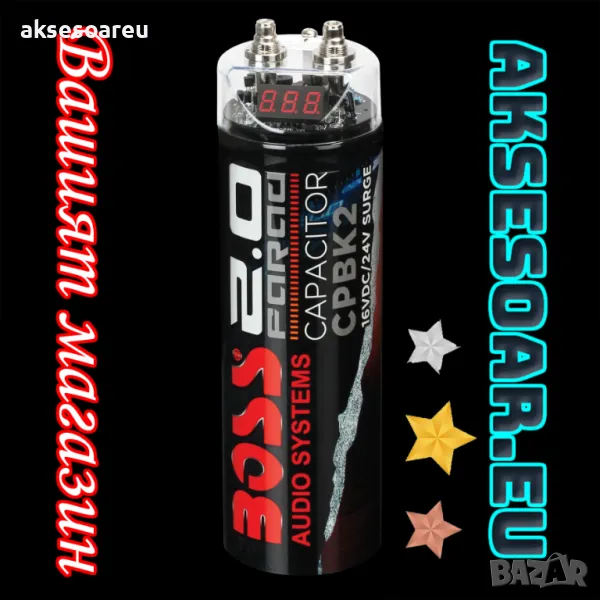 на надежден и мощен кондензатор. Използвайте предлагания от нас 2 фарада BOSS Audio Systems кондензатор за озвучителната система на вашата