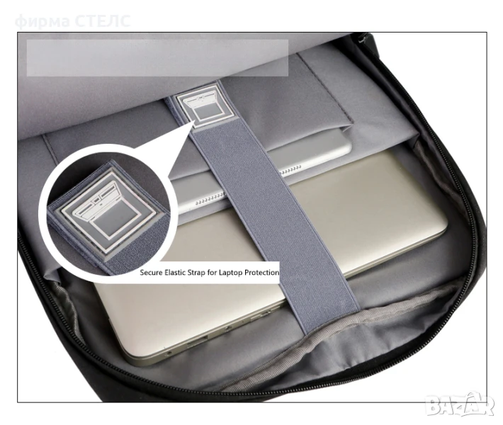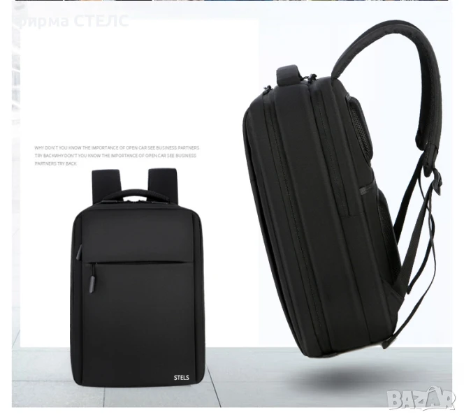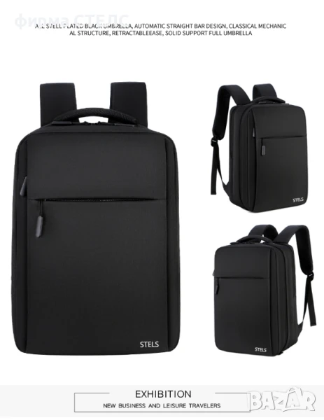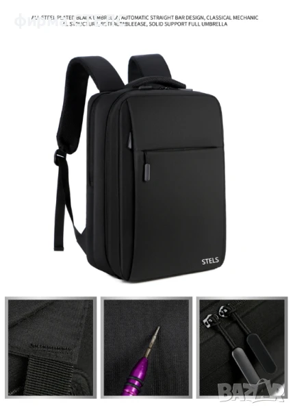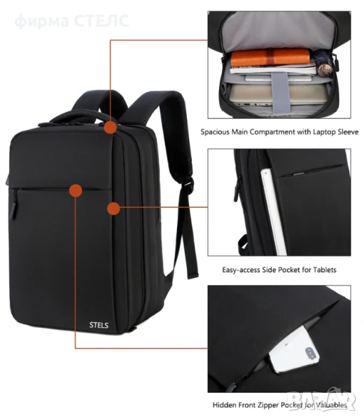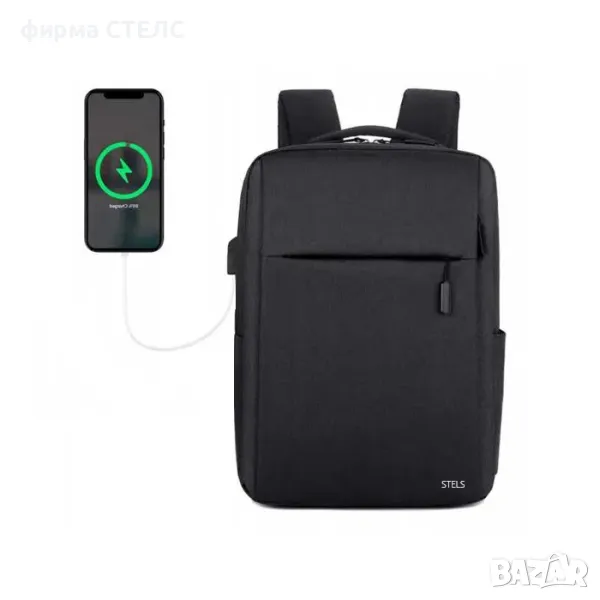 Спортна раница STELS, Отделение за лаптоп, Водоустойчива, Устойчива на износване, Джоб против кражба, USB интерфейс, Материал Oxford, Унисекс, 30x14x43см, Черен
