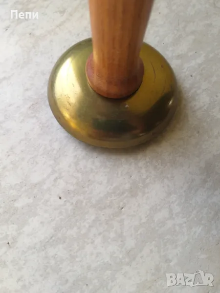Дървен свещник, ръчна изработка от български майстор. Височина 20 см. Поставката за свещ е месингова с шип за забождане на свещ.