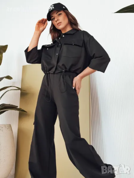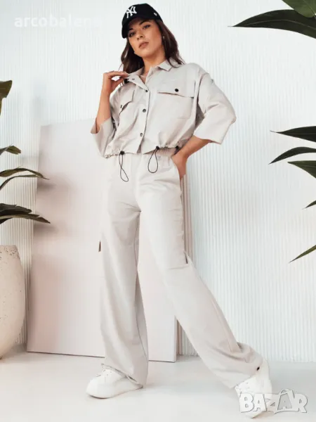 Дамският комплект MAROD е квинтесенцията на градския шик, съчетан с комфорт. Якето с класическа стояща яка прилепва добре по фигурата благодарение на шнурчето в долната част, а функционалното закопчаване с щракване гарантира защита от студа. Панталоните с широки крачоли и талия с шнур осигуряват перфектно прилягане. Карго джобът добавя характер и практичност, което прави този комплект идеалният избор за всеки повод.