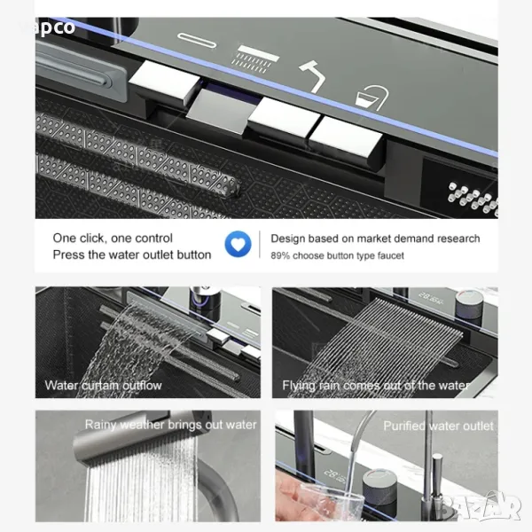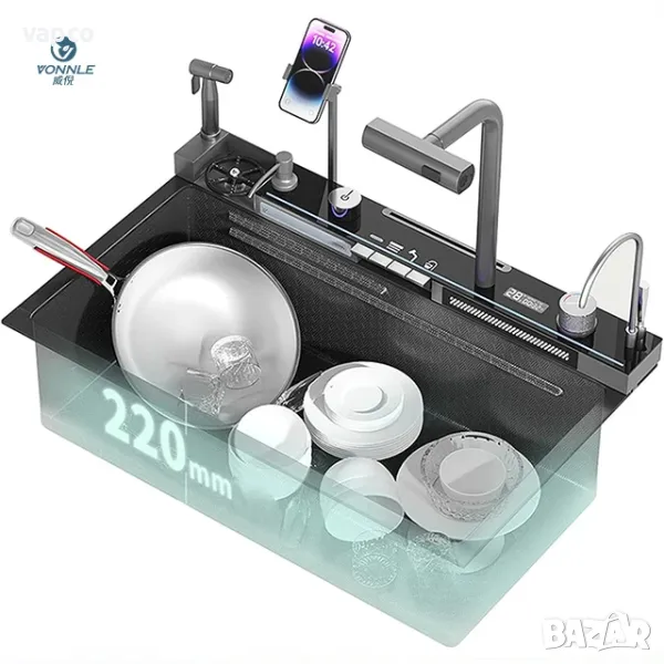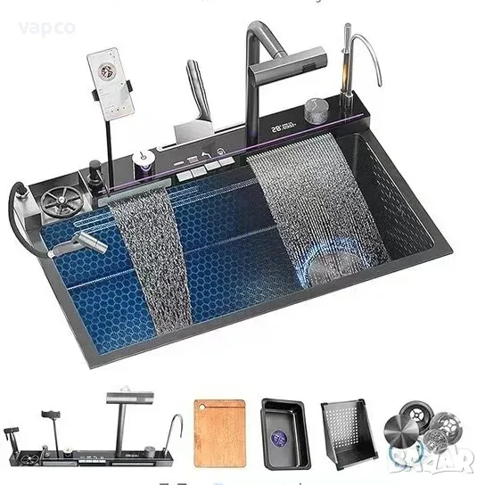 Модерна мултифункционална кухненска мивка с двовен водопад 20 в 1