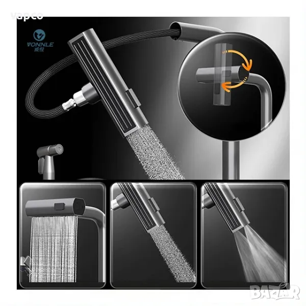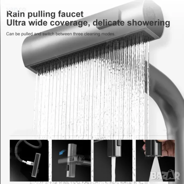 - Смесител за вода с 4 режима и въртяща се и издърпваща се глава