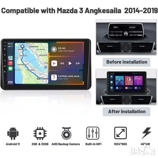 Мултимедия, за Mazda 3 Angkesaila, Двоен дин, Навигация, дисплей 2 Дин, плеър, Android, Мазда, Mazda