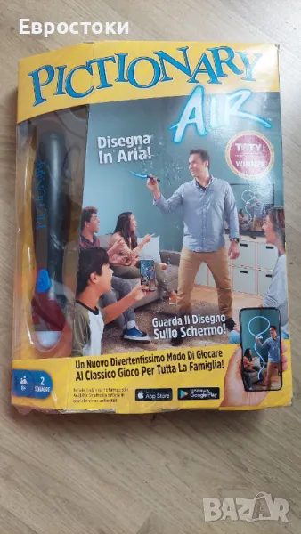 Pictionary Air предоставя нов и още по-забавен начин да играете класическата семейна игра за рисуване Pictionary. Изтеглете приложението Pictionary Air на вашия смарт телефон или таблет, за да започнете. Рисувайте във въздуха и вижте вашето творение на екрана на вашето смарт устройство или дори на вашия телевизор.
