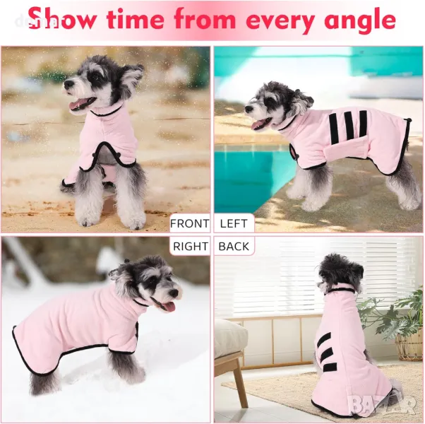 Poseca Хавлиен халат за кучета с регулируема яка и талия, супер абсорбиращ, розов, XL