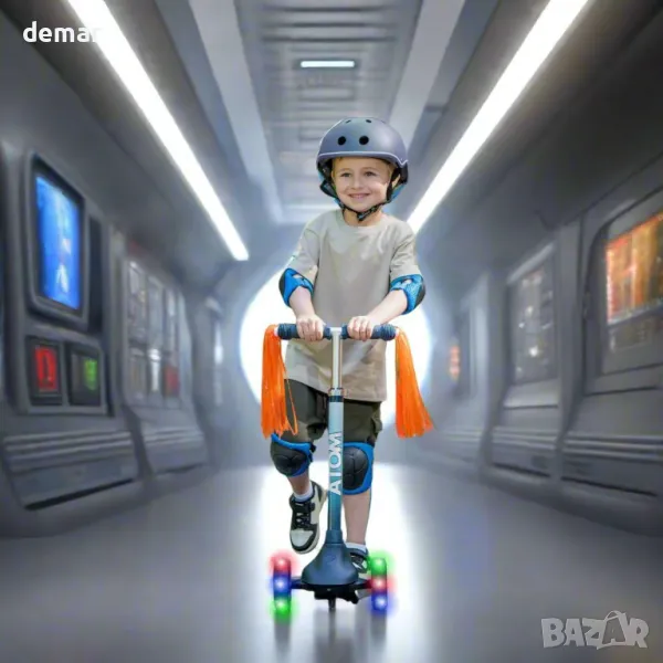 ATOM Eclipse Light-Up Детска тротинетка за бутане с регулируема височина на дръжката, за деца 3+ г.