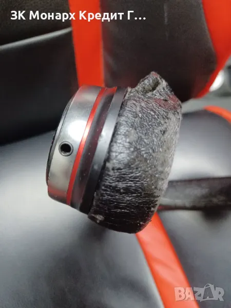 Кожените детайли на слушалките са износени или скъсани на места.