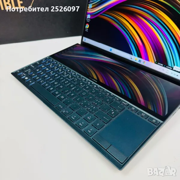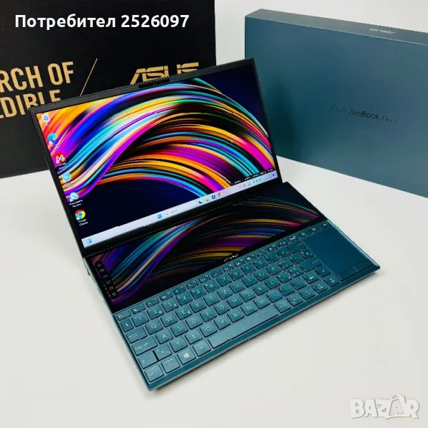 Лаптоп Asus ZenBook Duo Pro Touch UX481F в перфектно техническо и козметично състояние,без забележки и следи от употреба.Като батерията е на 154 цикъла на презареждане с 53% износване.