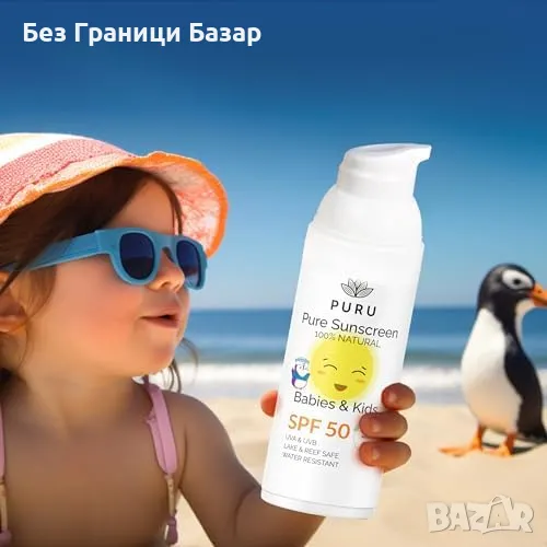 Нов Pure Mineral Слънцезащитен Крем SPF 50 За Деца - 50мл 100% Натурален