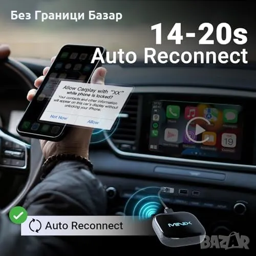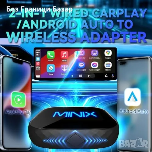 Нов Безжичен адаптер за CarPlay и Android Auto 2 в 1 за автомобили 2016+