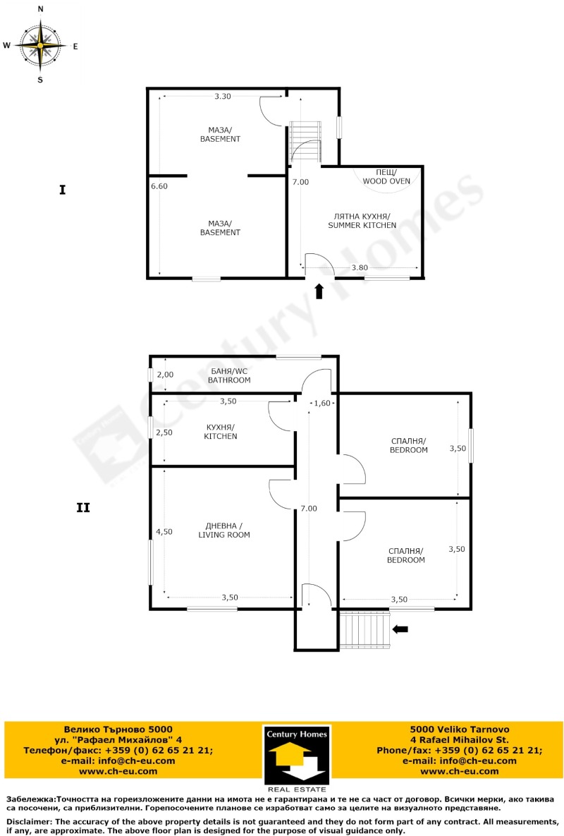 Жилището се простира на 93 кв.м. жилищна площ, разпределени на две нива. На приземното ниво в пристройка е разположена лятна кухня с пещ, от която по вътрешни стъпала се стига до просторна маза, която е под основната част на къщата.