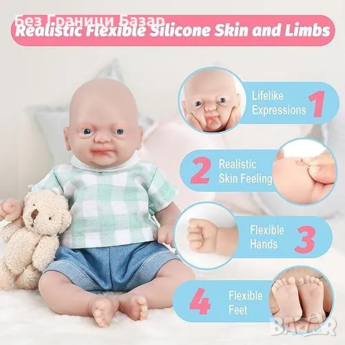 Нова Водоустойчива силиконова кукла 7" – реалистична играчка бебе