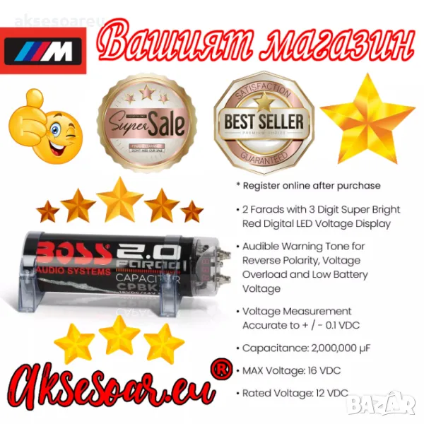 на надежден и мощен кондензатор. Използвайте предлагания от нас 2 фарада BOSS Audio Systems кондензатор за озвучителната система на вашата