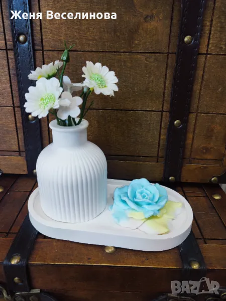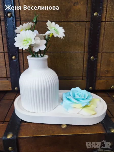 Комплект ваза с цветя и ароматна свещ във формата на цвете → Обява 47374147