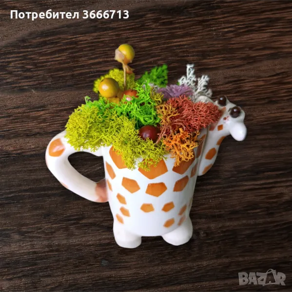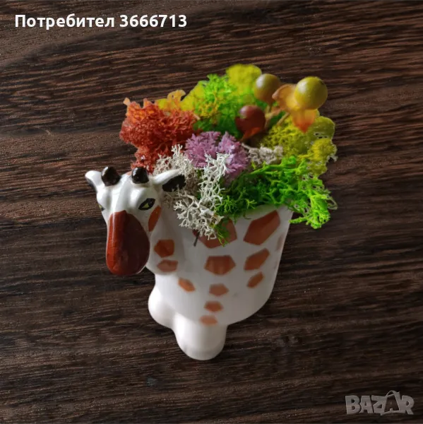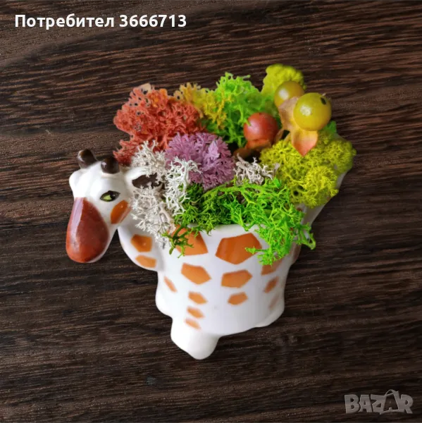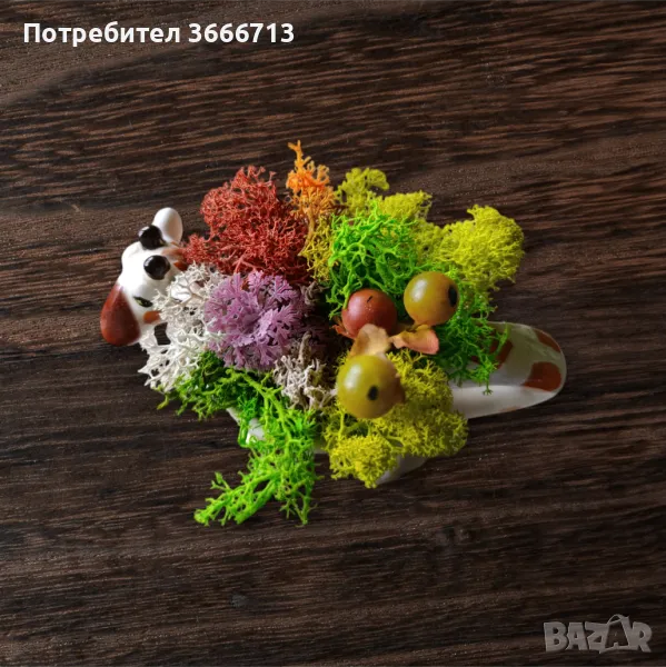 Керамична фигура на патица с малко пате,декорирани със скандинавски мъх. Мъха обира влагата в помещенията,не събира прах,не се полива,пречиства въздуха.Перфектният начин да внесете свежест, зеленина и усещане за уют и топлина в дома си. Декорации радващи окоти на всяка домакиня. Ширина 20см.височина 10см. Доставката е с куриерска служба Спиди.