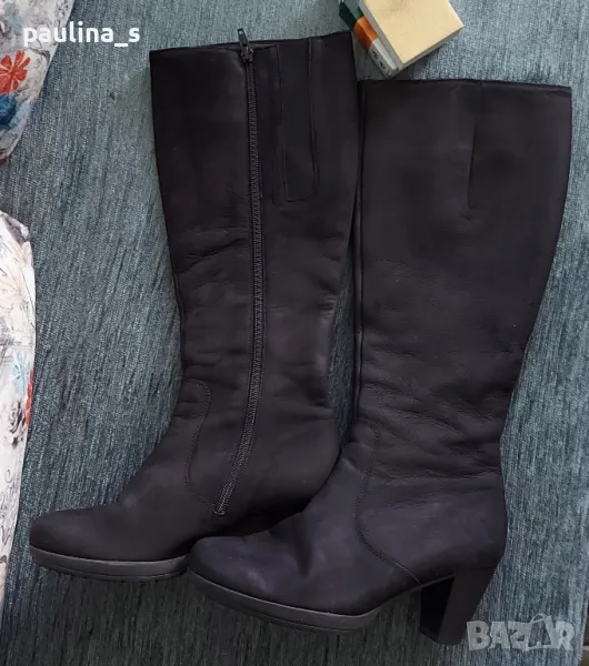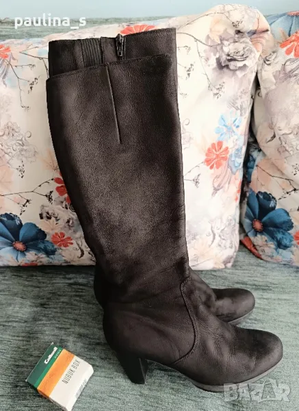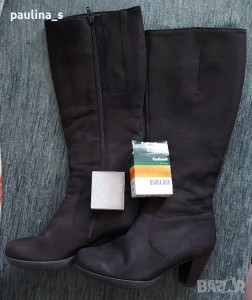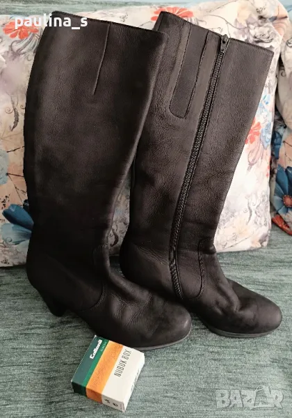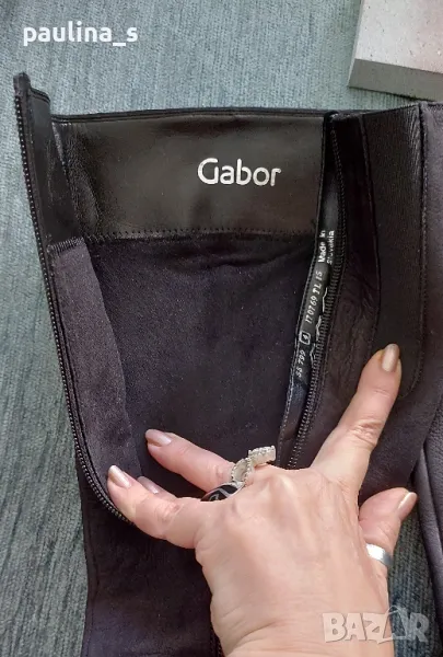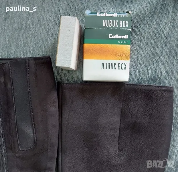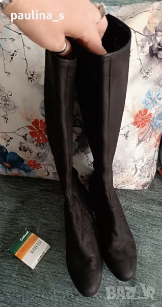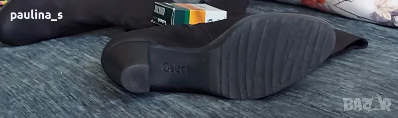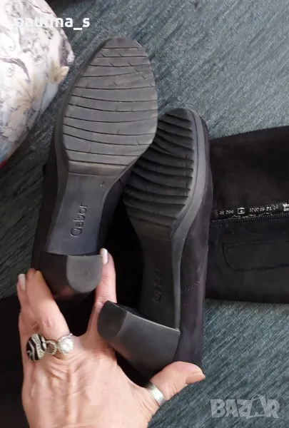 1️⃣. "Gabor". Дамски маркови ботуши от естествен набук с цип, купени са в чужбина за тройно повече от обявената цена. Ципът е здрав и надежден, има ластична лента за напастване на обиколката на прасеца. Стоят по крака, много елегантно. Набукът се поддържа с гума за набук, снимана е - цена 9лв, моята не се продава. Подметката е еластична, вероятно е латекс, не знам. Носени са малко, без дефекти, с перфектно качество и състоянието, което е видимо от снимките. Прилагам и скрийншот за сверяване на цените на бранда в секънд хенд сайт. Стелка 24,5см, става за 37 / 38 номер.