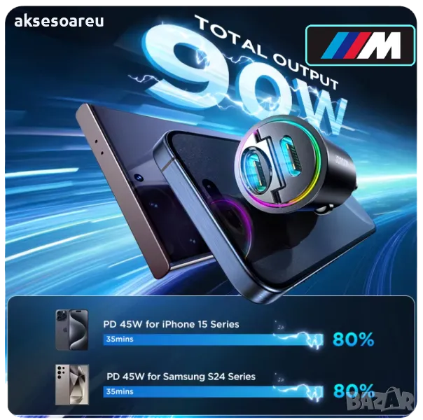 зарядно PD 45W & PD 45W зареждане с USB C на 2 телефона