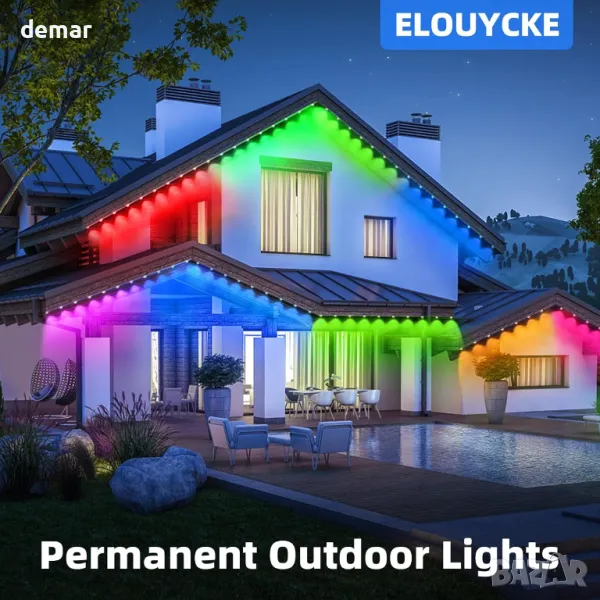 Постоянните външни светлини ELOUYCKE предлагат 16 милиона цвята и 213 сценични режима, идеални за създаване на завладяващи дисплеи на стрехи с персонализирано празнично осветление. Проектирани с 3-в-1 LED леща, тези светлини осигуряват ярки и широки ефекти на измиване на стената. Създадени за издръжливост, те са водоустойчиви IP67, работят при екстремни метеорологични условия и издържат до 50 000 часа. Управлението е лесно с приложението "Magic Lantern" или дистанционно, което позволява корекции на цвят, яркост и др. Инсталирането е лесно с VHB лепило, а светлините се синхронизират с музика чрез вграден микрофон, с настройки на таймера за автоматизирана работа.