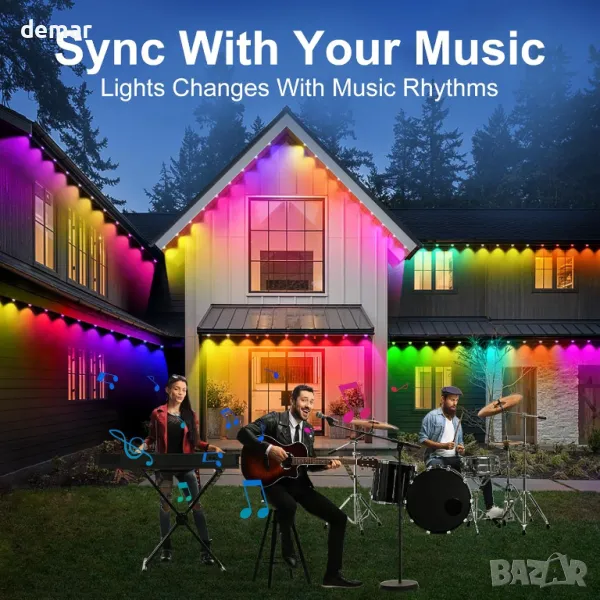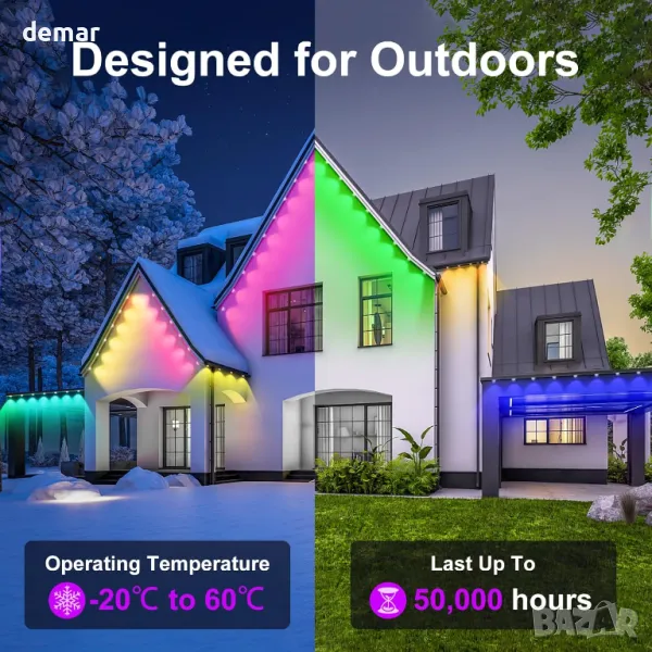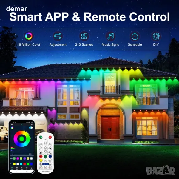 Постоянно външно осветление 15M, Smart RGBIC 30 LED,APP и дистанционно