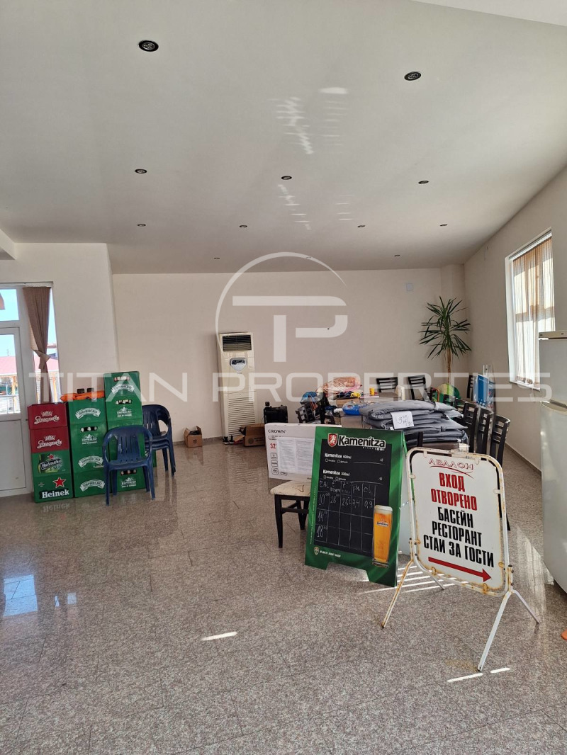 Хотелът е триетажен и разполага с площ от 390 кв.м.и включва три двойни стаи, ъглов ресторант с бар, кухня, закрита и открита част, баня с тоалетна, басейн - голям и малък, открит двор с шезлонги и закрита част - с места за хранене, барбекю, сондаж за вода.