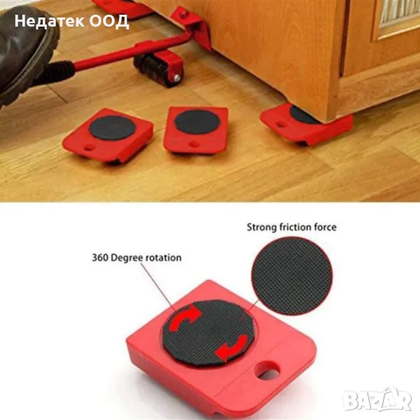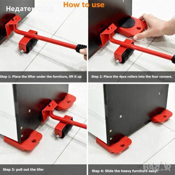Комплект за повдигане и преместване на мебели, Лост за повдигане и 4 основи на колела